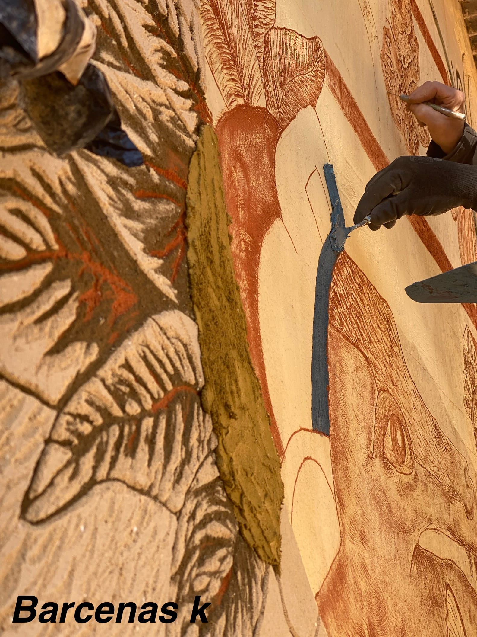 Kimberly Bárcenas es una artista-artesana y técnica especializada en pintura mural y esgrafiado, con una trayectoria que une la tradición del muralismo mexicano con prácticas contemporáneas en Europa. Su perfil profesional destaca por fusionar libremente métodos tradicionales con una dimensión artística que difumina las fronteras entre la artesanía y el arte mural aplicado. Formada en restauración de frescos en Florencia y en revestimientos murales en España, complementa su experiencia con estudios en Bellas Artes y una amplia formación en pigmentos, estucos y técnicas históricas.