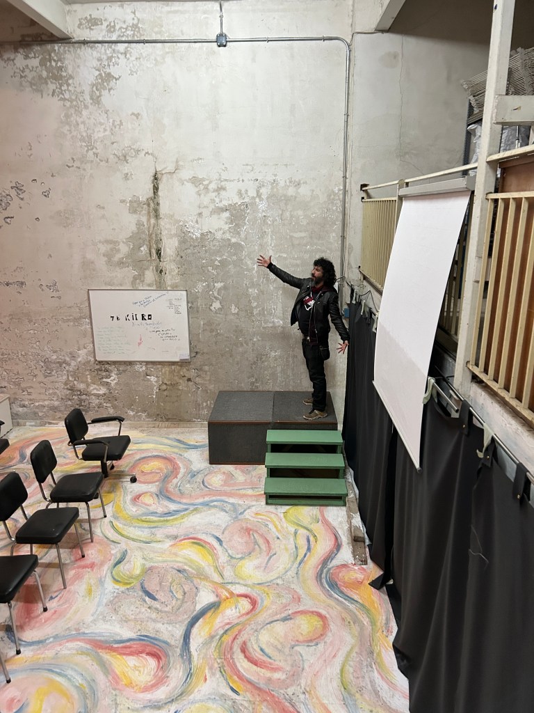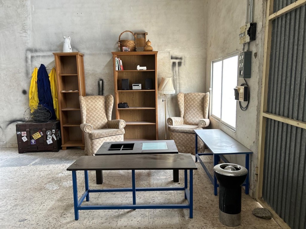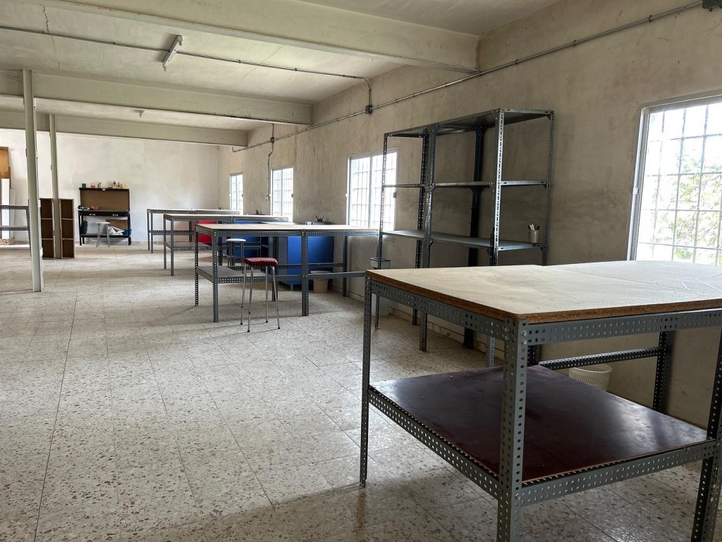 Es un nave textil construida en los años 70 y de la que haremos uso en sus 200m2. En la planta (50m2) baja tendrás un espacio de relax y la zona de formación. En la primera planta (150m2) estará el principal espacio de creación, con 5 mesas de trabajo y armarios, además de una enorme cantidad de material a tu disposición: Metal, plástico, madera y material textil (Tela, botones, cremalleras, cintas….). Dispone de wifi mediante repetidores desde la vivienda, sin muy buena señal.
