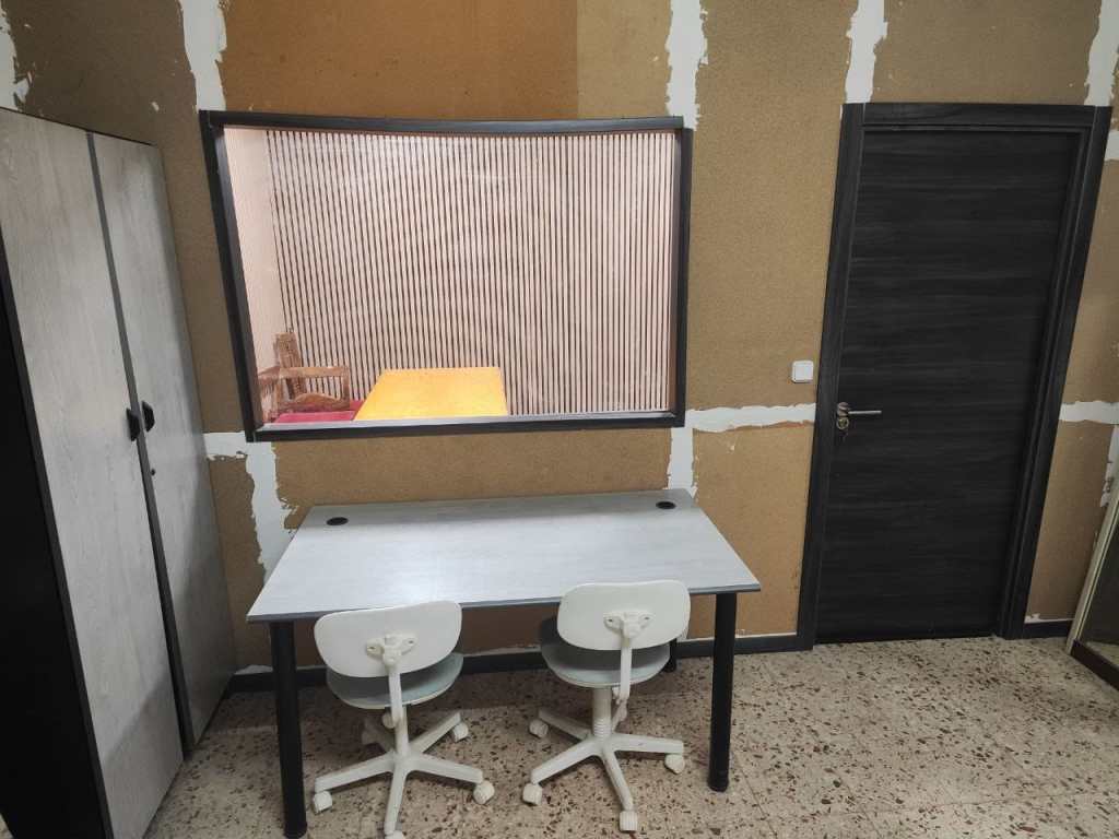 - 1º planta (150m2). Principal espacio de creación, con 5 amplias mesas de trabajo y armarios, además de una enorme cantidad de herramientas y material: Metal, plástico, madera y material textil (Tela, botones, cremalleras, cintas….). Dispone de wifi mediante repetidores desde la vivienda, sin muy buena señal, algo que mejoraremos próximamente